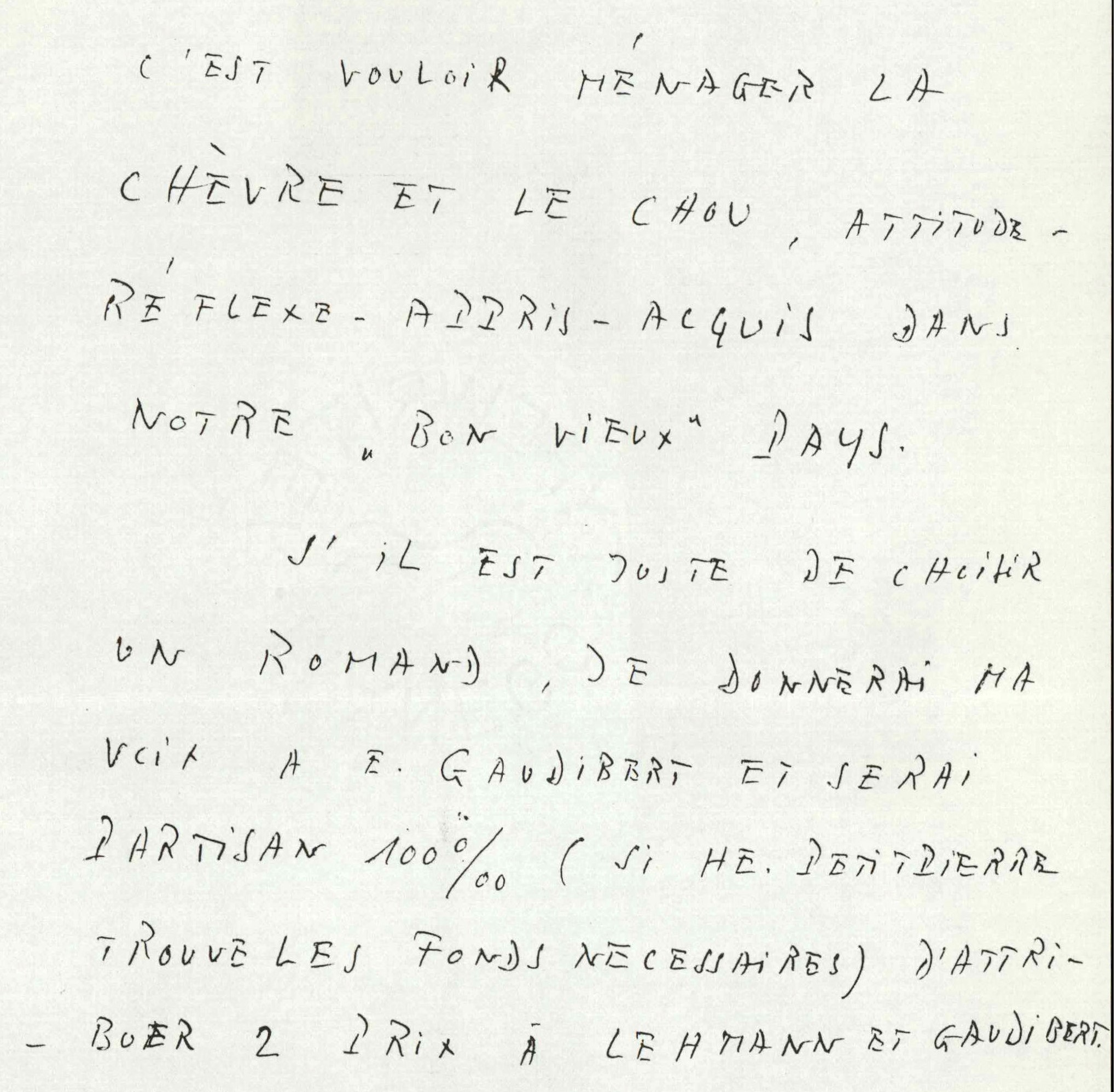 Bis es zu Lehmanns Wahl kam, war allerdings noch ein Konflikt zu bewältigen: Sacher wollte unbedingt den um den STV hochverdienten Julien-François Zbinden ehren. Dessen rückwärtsgewandte Ästhetik missfiel aber seinen Jury-Kollegen Räto Tschupp und Aurèle Nicolet, woraufhin Letzterer mit einem ausführlichen Brief Sacher umzustimmen versuchte. Mit Witz, Rhetorik und charmanter Empathie – und auch einer gezielten Bösartigkeit – setzt sich Aurèle Nicolet 1987 erfolgreich gegen Sacher durch, verhindert eine Ehrung Julien-François Zbindens, der sich für ihn «nur an die Werte der Vergangenheit klammert», und macht den Weg frei für Lehmann und Eric Gaudibert. (vgl. Abbildung unten und Kommentar)