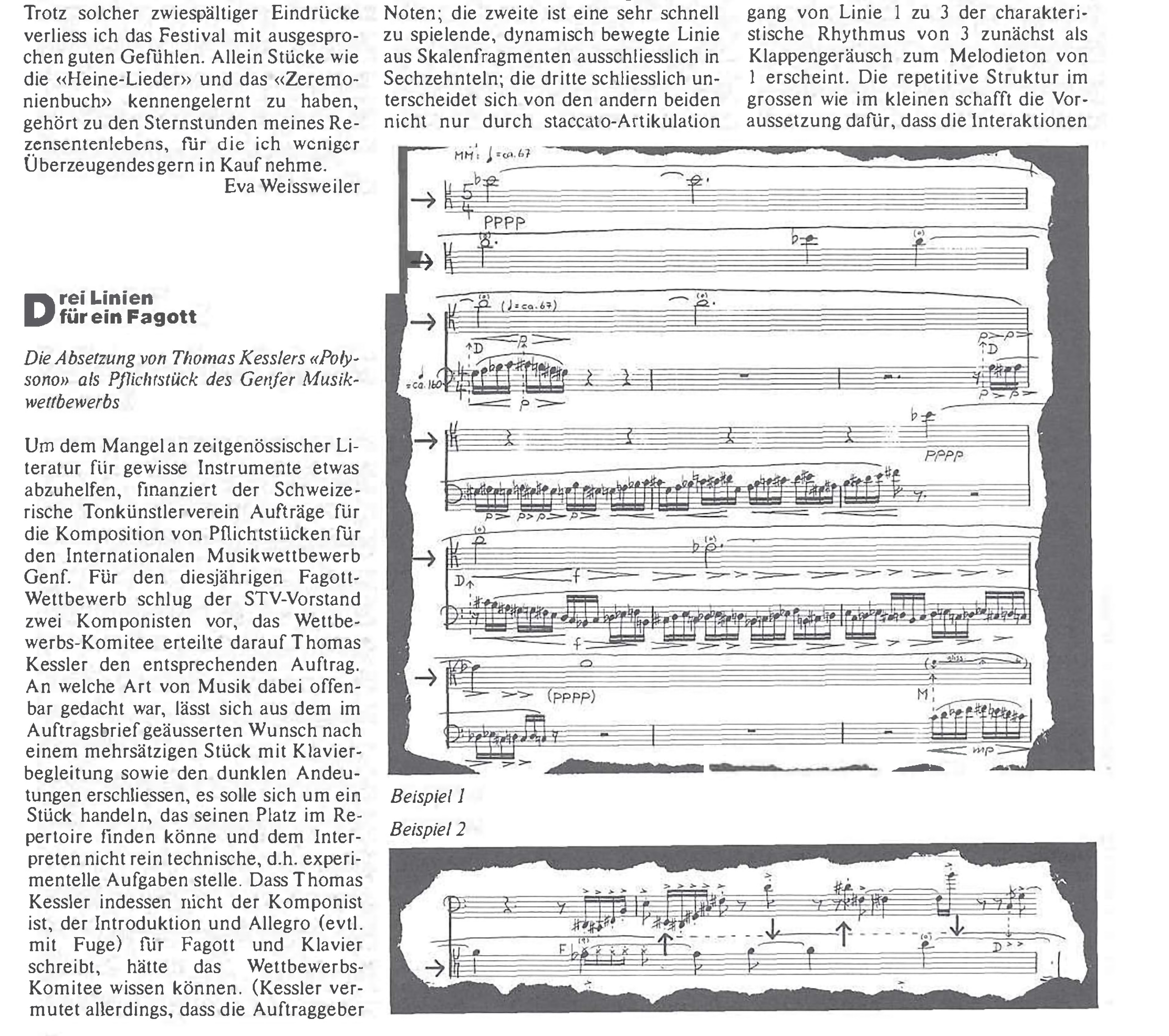 Zur Zerreissprobe wird ein polemischer Artikel von Jürg Stenzl zur Einführung von Jean Balissat als STV-Präsident, in dem nicht nur diesem, sondern der Musik aus der Suisse romande schlechthin eine ästhetisch regressive Haltung vorgeworfen, ja diese pathologisiert wird (vgl. Text zur Affäre Balissat). Opfer eines weiteren Angriffs ist der internationale Musikwettbewerb in Genf, der ein Pflichtstück von Thomas Kessler als unspielbar zurückweist, worauf sich Heinz Holliger und Aurèle Nicolet entrüstet in die Debatte einschalten und Christoph Keller die Attacke genüsslich ausbreitet.
