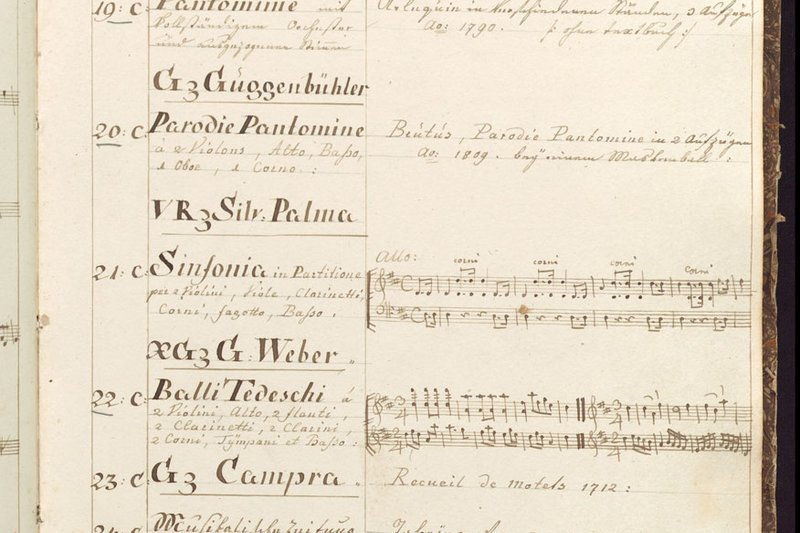 Am anderen Ende der Zeitachse war es für die Musikgesellschaft wichtig, im Repertoire immer auf dem neuesten Stand zu bleiben. So schenkte 1813 anlässlich seiner Einbürgerung ein gewisser J. E. Molitor (Müller) der Gesellschaft die Symphonie C-Dur von Carl Maria von Weber, nur ein Jahr nach ihrer Drucklegung.
