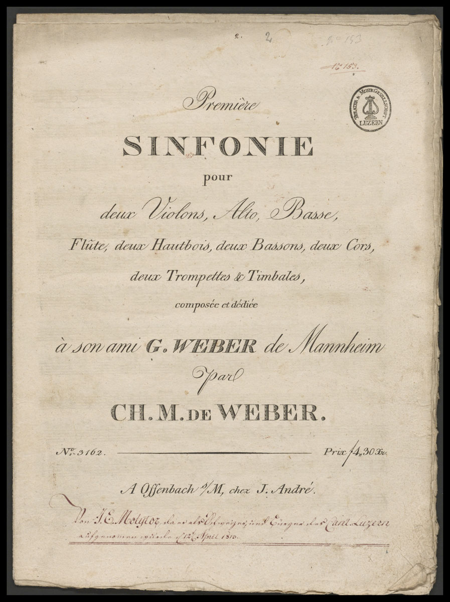 Carl Maria von Weber, Première sinfonie …, 1812 (ZHB Luzern, AML I.193, Titelblatt)