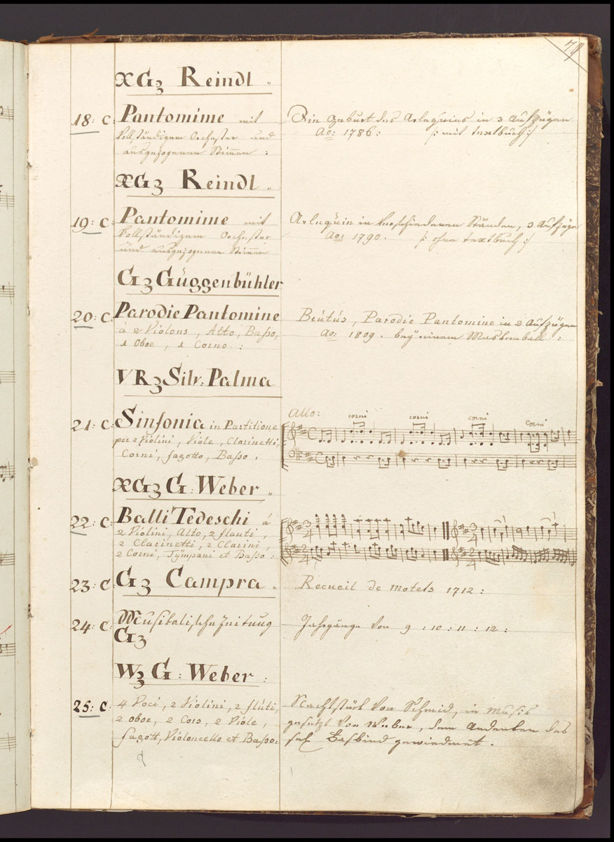Aus: Repertorium der in dem Archiv der Theater und Musik-Liebhaber Gesellschaft zu Luzern befindlichen Musikstücke, 1808–1817 (ZHB Luzern, Ms.568.fol.:XI, S. 79)