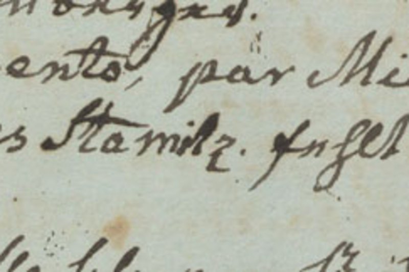 Carl Philipp Stamitz (1745–1801) verliess die Mannheimer Hofkapelle im Jahre 1770. Ob diese Triosonate auf seinen Stationen in Paris, Den Haag oder auf einer seiner ausgedehnten Konzertreisen entstanden ist, lässt sich nicht mehr ermitteln. Diese Noten schrieb jedenfalls Jacob Christoph Kachel, Sarasins Hausmusiker, in Basel ab.