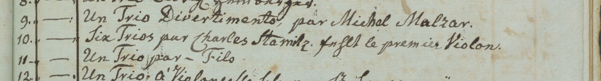 10. Six Trios par Charles Stamitz [Carl Stamitz (1745–1801)]. fehlt le premier Violon.