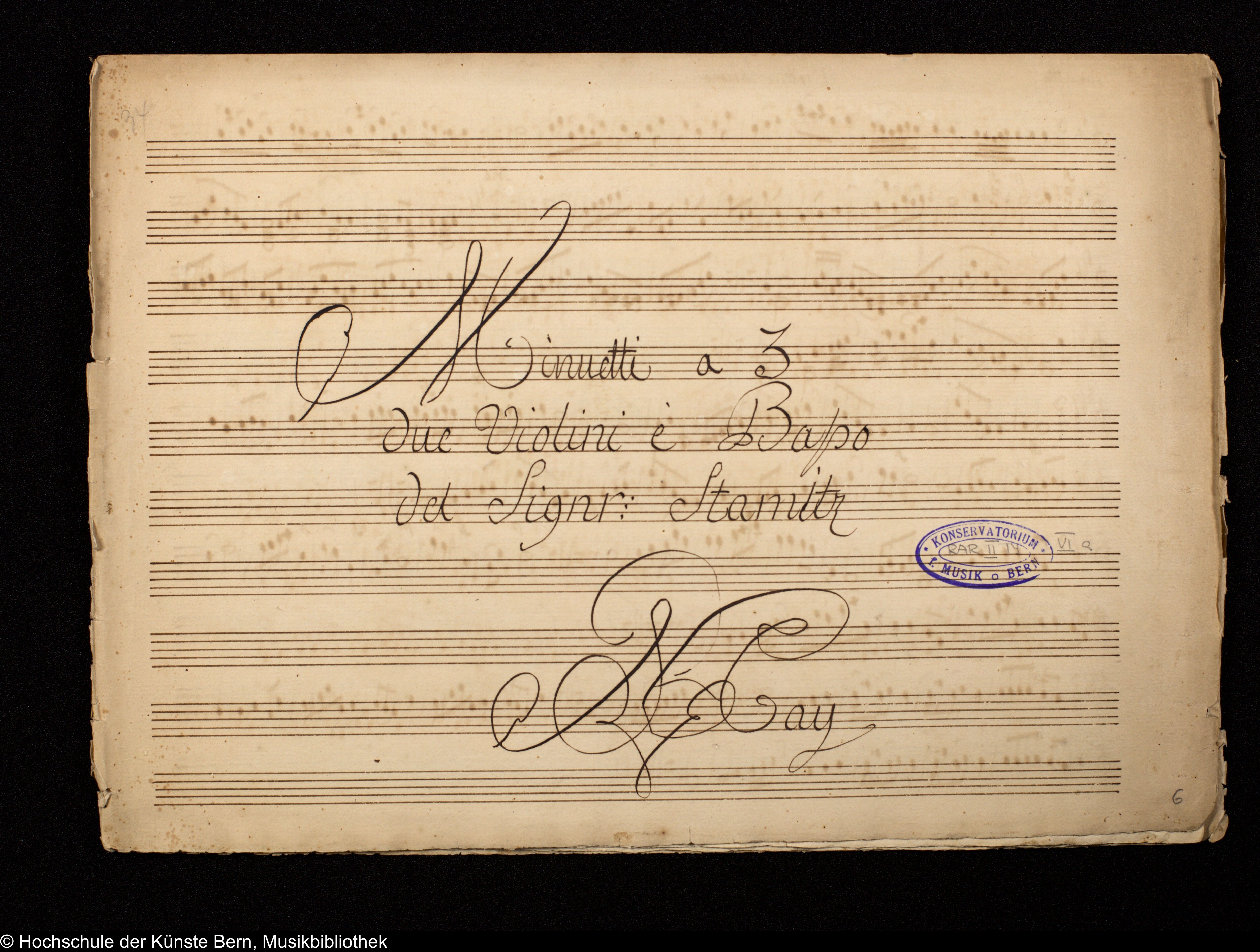 Ein weiterer Berner Patrizier, höchstwahrscheinlich Gabriel Emanuel von May (1741–1836), war der Besitzer dieser Menuettsammlung. Obwohl das Titelblatt Stamitz als Komponisten nennt, handelt es sich tatsächlich um eine Zusammenstellung von sieben Ausschnitten aus verschiedenen Werken von Johann Stamitz, Anton Fils und Gaetano Pugnani, der auf seinen Konzertreisen auch in Genf, Lausanne und möglicherweise in Bern auftrat.