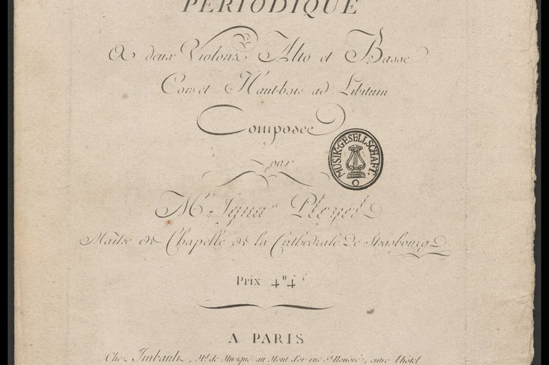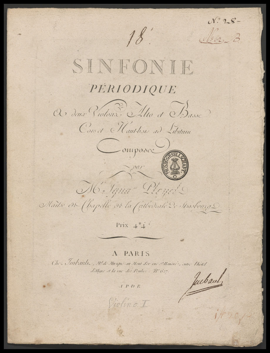 Der in Österreich geborene Ignaz Joseph Pleyel (1757–1831) war ein weitgereister Musiker, Komponist, Musikverleger und Klavierbauer. Den Grossteil seines Lebens verbrachte er in Frankreich, wo er die auch die bis heute bestehende französische Klavierfabrik Pleyel gründete. Seine 1791/92 in Paris gedruckte Symphonie périodique war sowohl in Basel als auch in Luzern vorhanden. Das Luzerner Exemplar war der Theater- und Musikliebhaber-Gesellschaft im März 1807 von Prinz Philipp von Hohenlohe (1743–1824) als Geschenk überreicht worden.