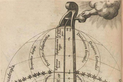 Bild: Ausschnitt aus Robert Fludd, De Metaphysico Macrocosmi et creaturaru[m] illius ortu, (Caput III. De monochordo mundano, et de consonantiarum illius, tam simplicium quam compositarum inventione...), Oppenheim: Johann Theodor de Bry & Gallus Hieronymi 1617, S. 90 © SLUB/Deutsche Fotothek